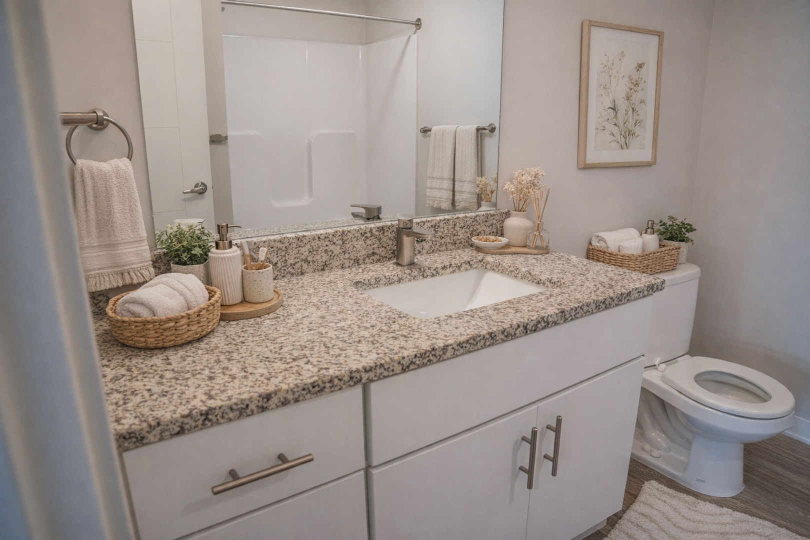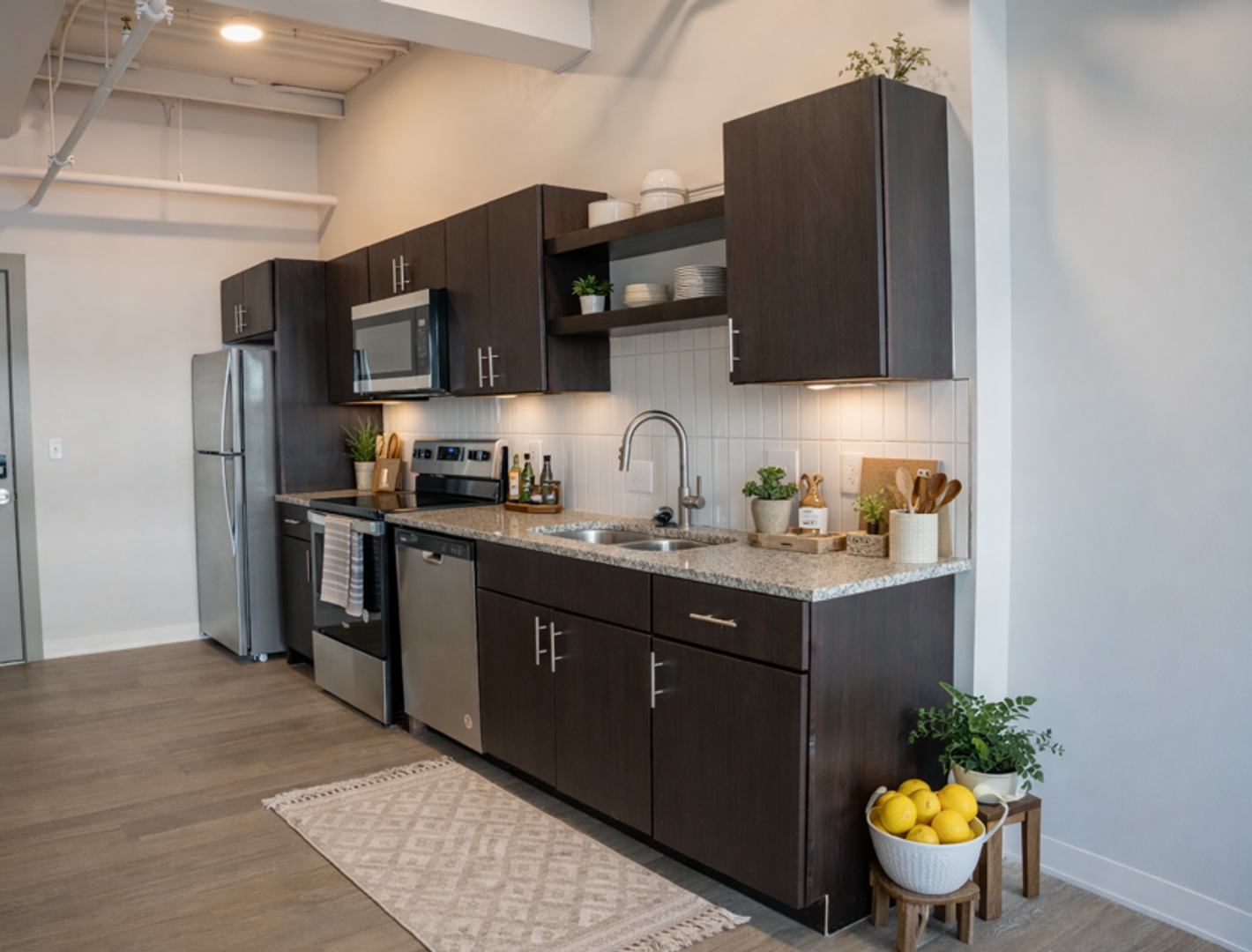 The thoughtful design of our apartments come with modern finishes, such as granite countertops, stainless steel appliances, high ceilings & large windows!
