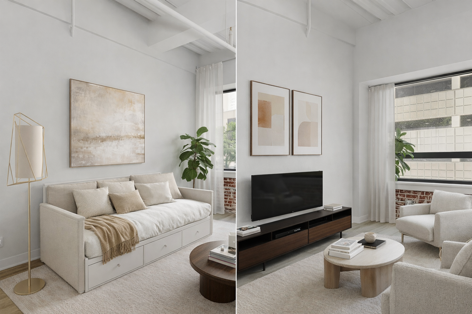 Studio with 10th Floor Views & Exposed brick accents